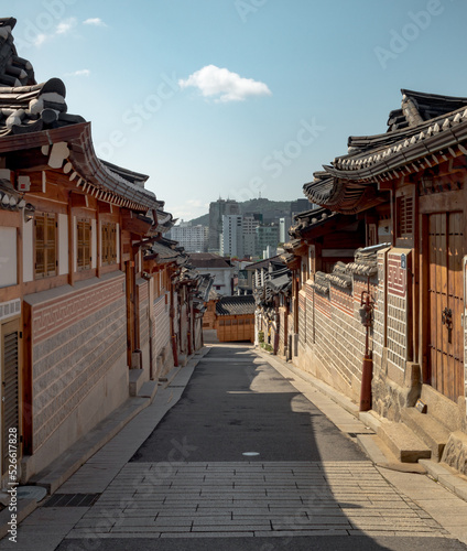 © Jacki, Fototapeta premium Traditional Korean architecture design buildings at the Bukchon Hanok Village in Seoul South Korea