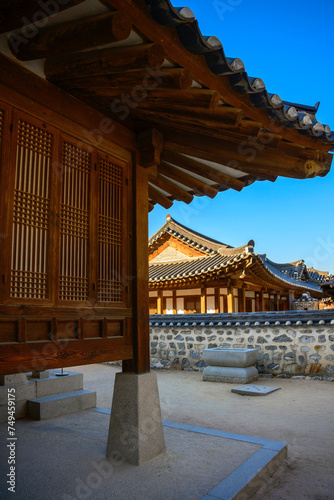 Fototapeta premium Traditional Korean house with walled yard at the folk village park in Seoul,...