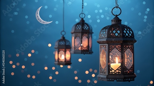 © Hasan, Fototapeta premium Traditional Lanterns with a Moonlit Night