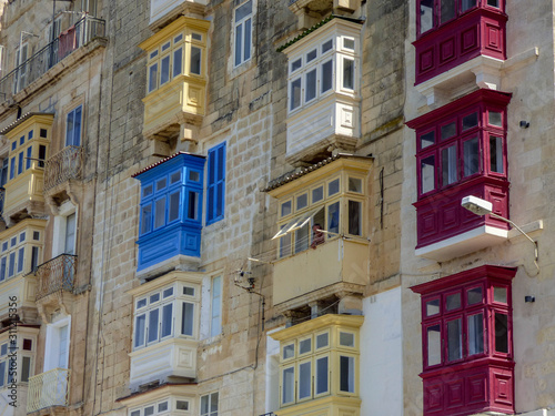 © Lisa, Obraz premium Traditional Maltese Window Boxes in Valetta