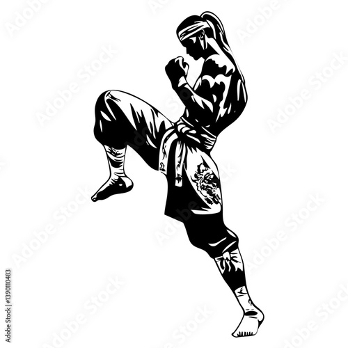 Obraz premium Traditional Martial Warrior logo illustration – Silhouette of a Combat-Ready...