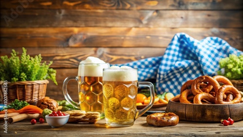 Fototapeta premium Traditional Oktoberfest celebration with delicious food and refreshing beer ,...