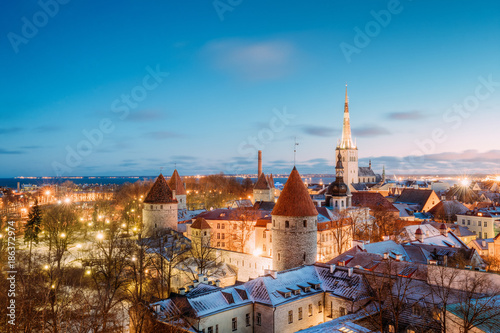 Fototapeta premium Traditional Old Architecture Cityscape In Historic District Of Tallinn