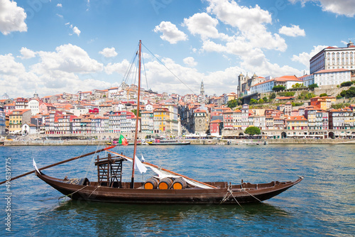 Obraz premium Traditional old portuguese wooden boats called barcos rabelos, used in the past to transport the famous port wine - Oporto - Portugal