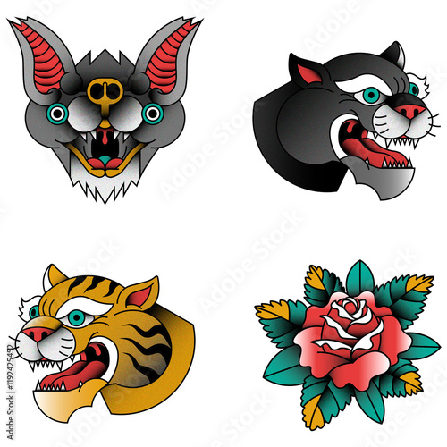 Fototapeta premium Traditional old school sticker set transparent png