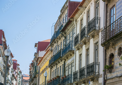 Fototapeta premium Traditional portugueses buildings with colorful facade and tiles, Porto, Portugal