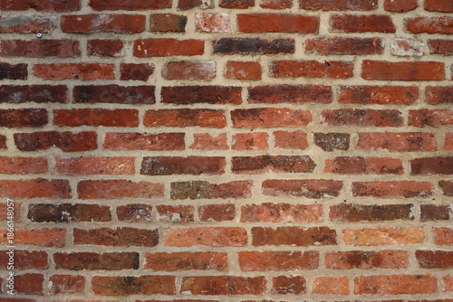 Fototapeta premium Traditional red brick wall with bricks aged by weathering