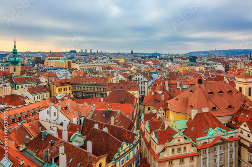 © SvetlanaSF, Obraz premium Traditional red roofs of Prague