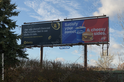 © eugen, Fototapeta premium traditional roadside billboards on the north side of Lake Shore Blvd E for Betty and DQ, Toronto
