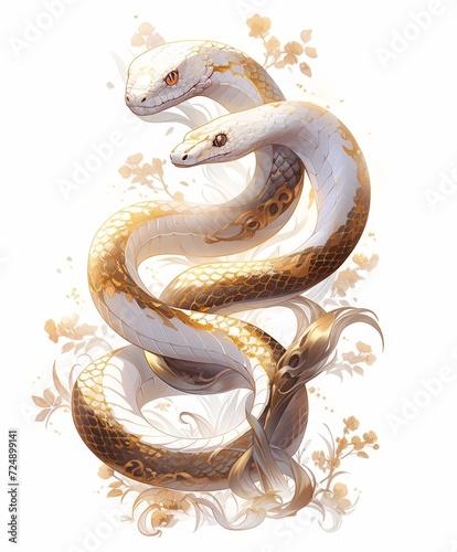 © Thanate, Obraz premium Traditional Splendor: Chinese New Year's Animal Charm Python Zodiac Sign in Golden Decorative Elegance