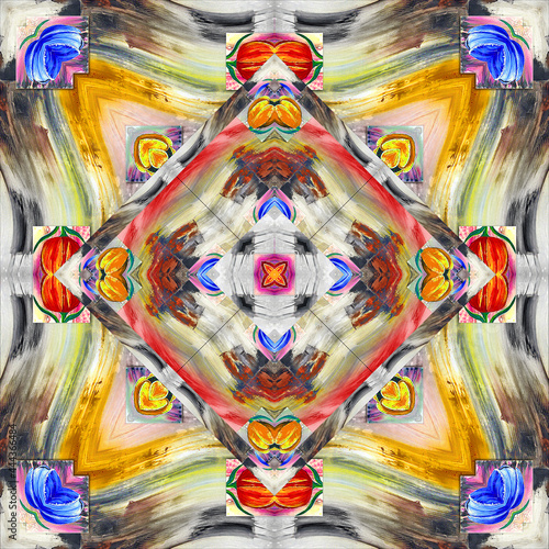 © Pankaj, Fototapeta premium traditional square scarf with different geometric and paisley pattern