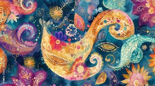 © Rauf, Fototapeta premium Traditional textile block print pattern like Ajrakh or Ikat, featuring abstract hand block prints, representing various cultural styles. -