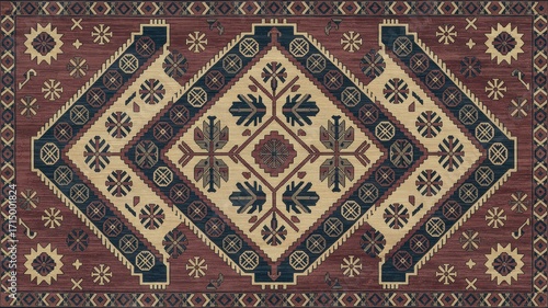 © Trendboyt, Obraz premium Traditional Turkish Carpet with Geometric Patterns