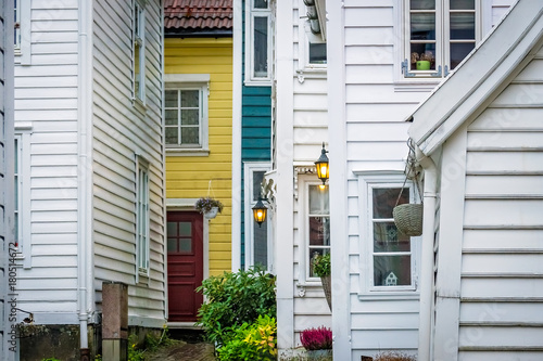 © Pav-Pro Photography , Obraz premium Traditional white houses in the old part of Bergen