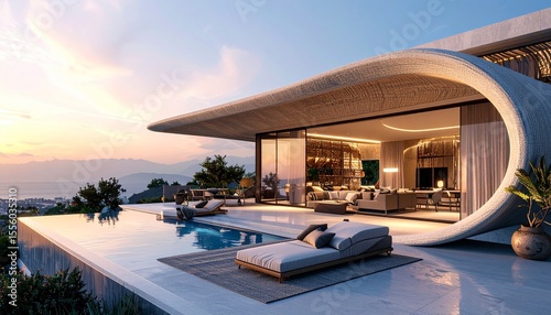 Fototapeta premium Traditional woven fabrics reimagined as architectural elements in a...