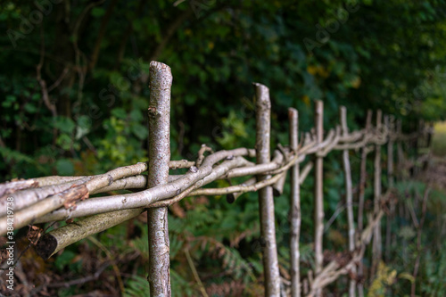 © Rob Wilkinson, Fototapeta premium Traditional woven willow wicker fence panel , close up .