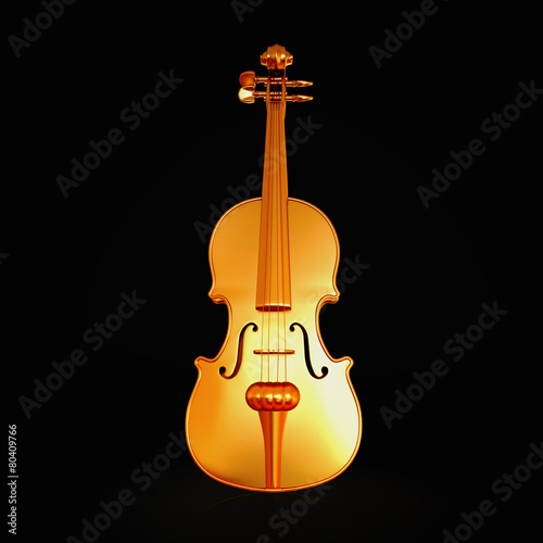 © Vitte Yevhen, Naklejka premium Tradycyjne złote skrzypce na białym tle na czarnym tle.