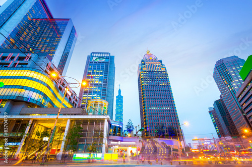© zhu difeng, Obraz premium traffic blurred motion and office buildings