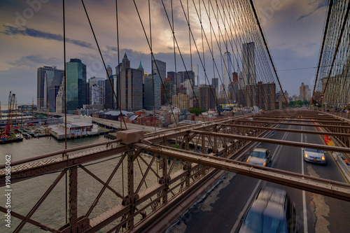 Obraz premium Traffic crossing the Brooklyn Bridge in New York City