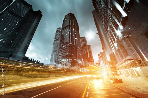 © Iakov Kalinin, Obraz premium traffic in Hong Kong at sunset time