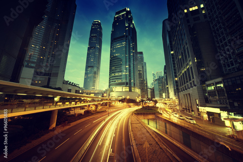 © Iakov Kalinin, Obraz premium traffic in Hong Kong at sunset time