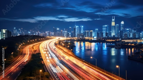© Fanni Art, Fototapeta premium Traffic in seoul at night and city speed motion glowing lights