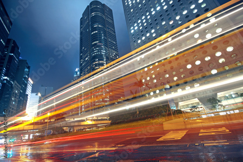 © Cozyta, Obraz premium traffic light trails in the street by modern building