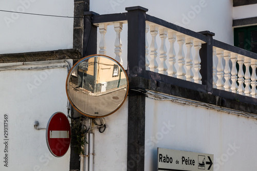 © yassmin, Fototapeta premium Traffic mirror and No entry traffic sign