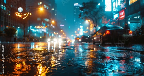 © Darcraft, Fototapeta premium Traffic on a wet street at night in the City.