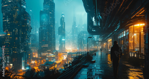 © Darcraft, Naklejka premium Traffic on a wet street at night in the City.
