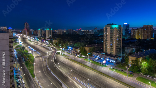 © HyperlapsePro, Fototapeta premium Traffic on avenue Marshal Zhukov timelapse in Moscow at night