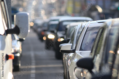 Fototapeta premium traffic on the road in a European city, stopping vehicular traff