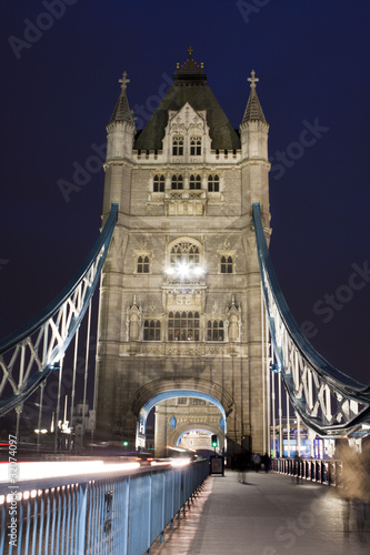 © whitewizzard, Obraz premium Traffic on The Tower Bridge at night in London, UK