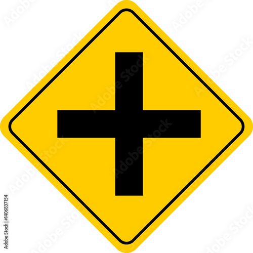 © Coasta, Obraz premium Traffic Signs and Rules 1 Crossroads Ahead Yellow Sign
