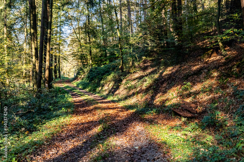 © lisandrotrarbach, Obraz premium Trail in black forest with autumn leaves