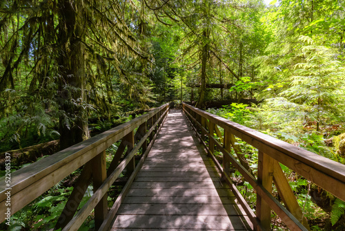 Obraz premium Trail in Lush Green Rain Forest in Pacific Northwest. MacMillan Provincial...