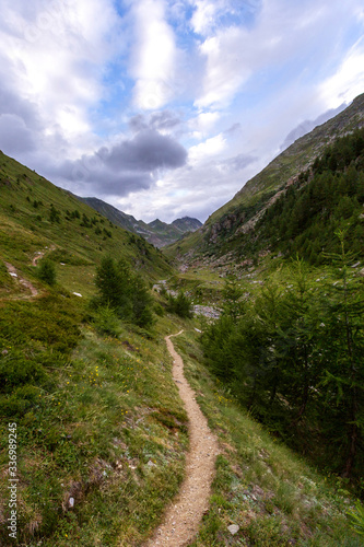 © vadimborkin, Naklejka premium trail in the mountains, alps switzerland