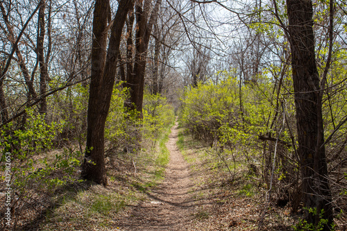 Fototapeta premium Trail in the sunny forest in spring