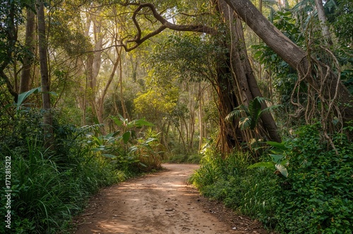 © The 2R Artificiality, Fototapeta premium Trail through a dense woodland area