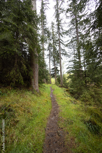 © Eifel Kreutz, Fototapeta premium Trail through a Pine Forest in the Northwest Highlands of Scotland