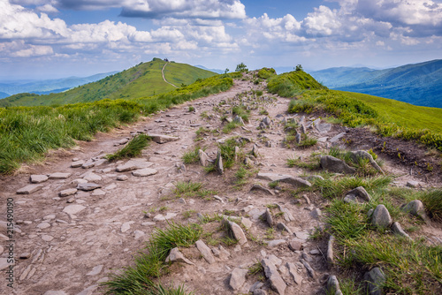 Obraz premium Trail to mountain cabin called Winnie the Pooh Hut shelter in Bieszczady...