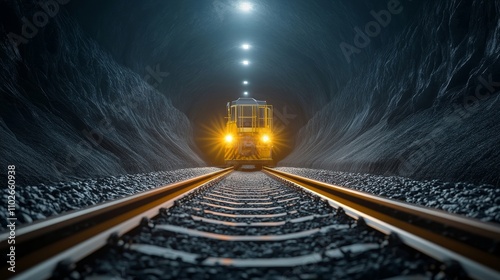 Obraz premium Train Approaching in Dark Underground Tunnel