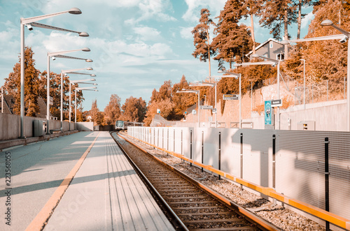 © eshana_blue, Obraz premium Train approaching open station in Oslo