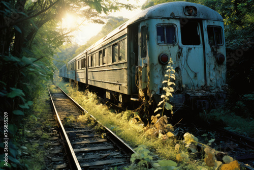 © design, Fototapeta premium 電車, 壊れた, 線路, 乗り物, 廃棄, Train, Broken, Railroad Tracks, Vehicle, Disposal
