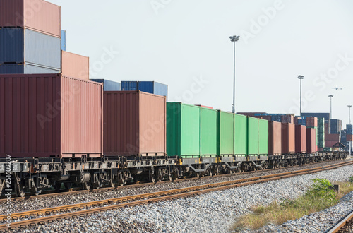 Obraz premium Train cargo container In the container freight station