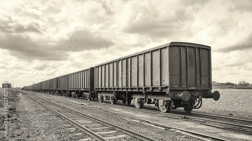 Obraz premium train carriages on an industrial track, their utilitarian design framed by...