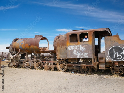 Naklejka premium Train cemetary near Uyuni, Bolovia