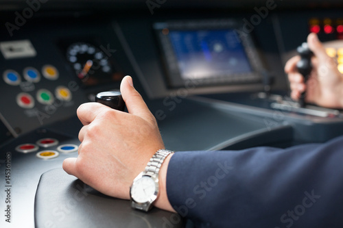 © wellphoto, Fototapeta premium Train driver. Railroad engineer.