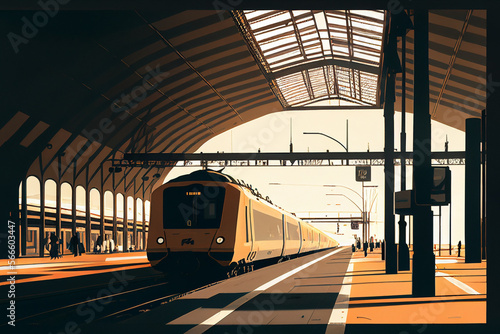 © Rosekipik, Fototapeta premium train en gare illustration minimaliste