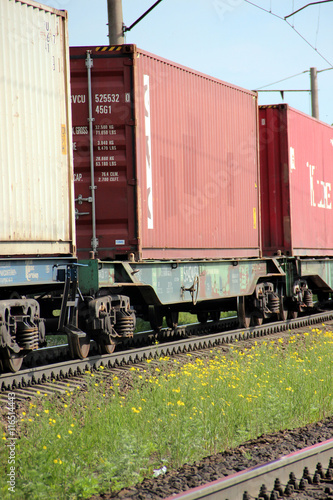 Fototapeta premium Train Freight transportation. Cargo transit. Summer Day